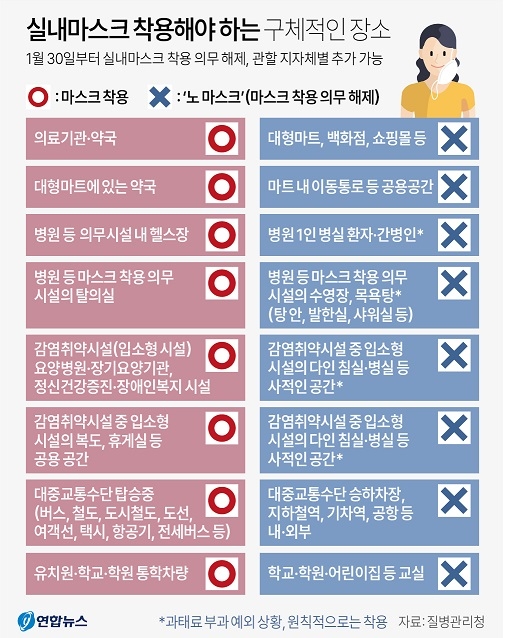 설 연휴 이후 1월 30일부터 1단계 의무 조정 시행으로 실외에 이어